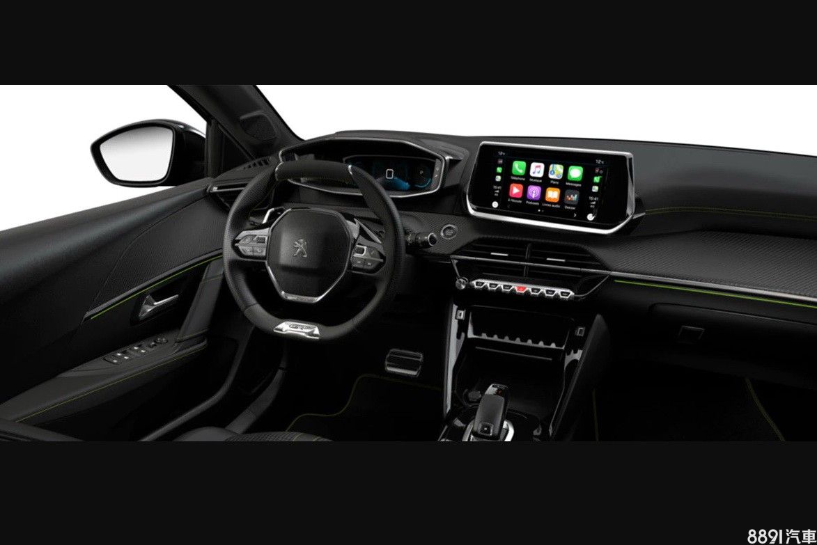 車室均採雙色搭配(Active橘黑、Allure綠黑、GT Line Cielo為亮綠黑),導入新世代i-Cockpit座艙,包含上下均採平底設計的方向盤、懸浮式多媒體系統等,Keyless、3D數位儀錶、恆溫空調和電子手煞車等,為二階以上Allure車型標配,頂規再追加皮布雙織跑車式座椅和Qi無線手機充電裝置等。