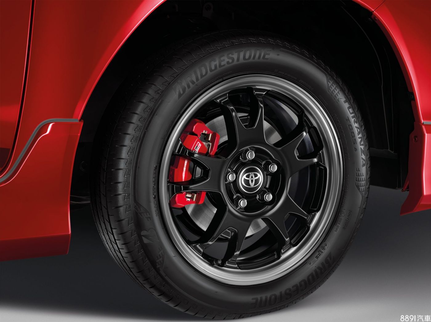 低底盤版本配置17吋輛黑色鋁圈,配胎選用普利司通Turanza T005,是一款適合一般道路行駛的轎車胎,搭配GR Sport款紅色卡鉗相當搶眼;至於高底盤版本則換上18吋鋁圈,配胎改搭普利司通Dueler系列,標榜SUV專用胎。