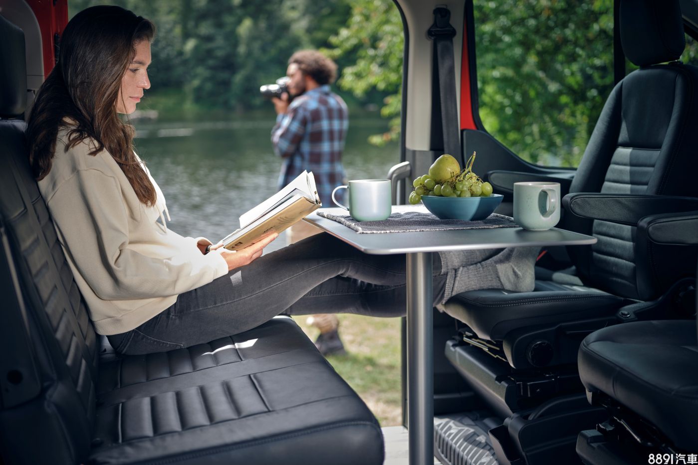 福特將Focus Active、Fiesta Active等「跨界CUV」的靈感,融入旅行家露營車之中,其Active版本透過車身下緣大面積防刮塑料、防撞飾板、17吋鋁圈等配置,營造出濃郁的越野風格。