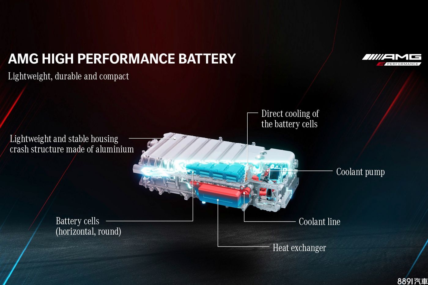 400V的高壓電池組,安置於馬達模組上方,重量僅89kg,並採用14L的冷卻液協助內藏的560顆電池,能夠常時維持在45度C的理想溫度。搭配3.7kW的AC交流車載充電器,能支援一般AC充電樁、壁掛充電器和家用插座等充電方式,充電插座則設置於後保桿上。
