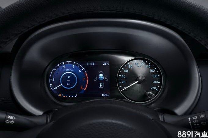 先前中國版Kicks採用的是中置多功能顯示幕的雙環式儀錶,小改款換上左側7吋TFT顯示幕+右側傳統指針的款式,右側為時速,左側則以數位顯示轉速錶,以及油耗、駕駛輔助科技等訊息。