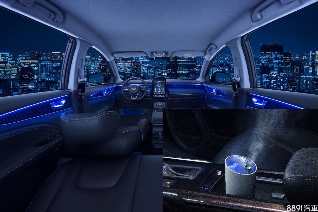 環艙炫彩悅動套裝包含環艙氣氛燈組、添加天然精油與抑菌液的擴香機,並可透過手機App進行調整,內建Static(單色恆亮)、Jump(跳換)、Gradient(漸換),以及Flash(閃換)4種模式,搭配客製化的漸層調色介面,打造個性化車室。