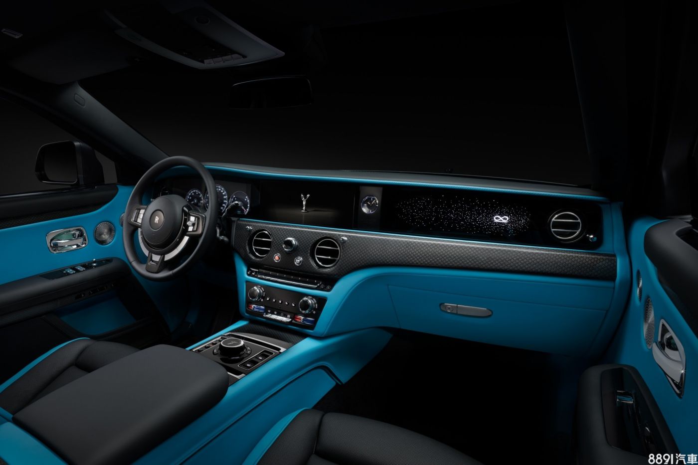 而黑化的可不只是外觀,內裝同樣以深色實木飾板及碳纖維飾板來鋪陳,並於副駕駛座前方的星辰飾板旁附上Black Badge專屬的「無限」符號。
