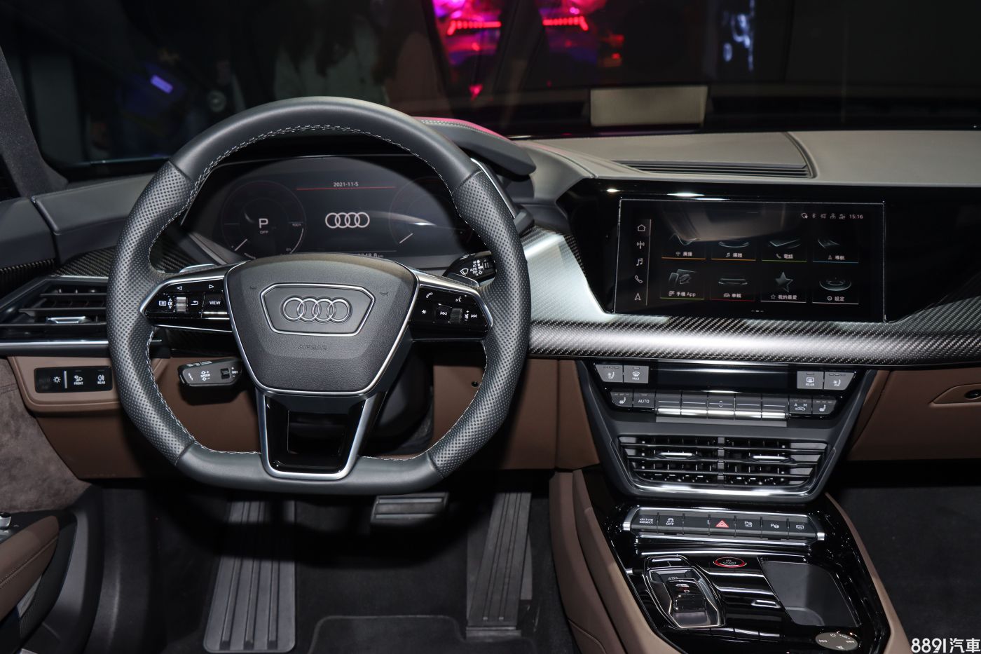 平底方向盤同為標準配備,附帶可調整動能回收強度的撥片。數位介面未見e-tron休旅的三螢幕配置,而是標配12.3吋數位儀錶及10.1吋觸控多媒體系統,並搭載MIB 3系統介面,支援Apple CarPlay及Android Auto等連結服務。