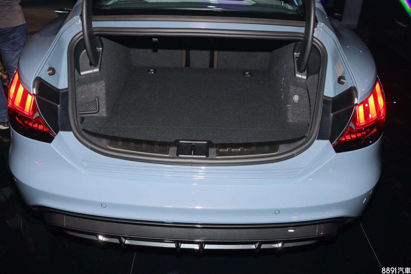 將電動尾廂蓋開啟後,e-tron GT不分車型皆可提供350L的尾廂容積,搭配可4/2/4傾倒的後排座椅,空間表現能進一步提升,不過原廠並未公布後排完全傾倒後的載物空間。