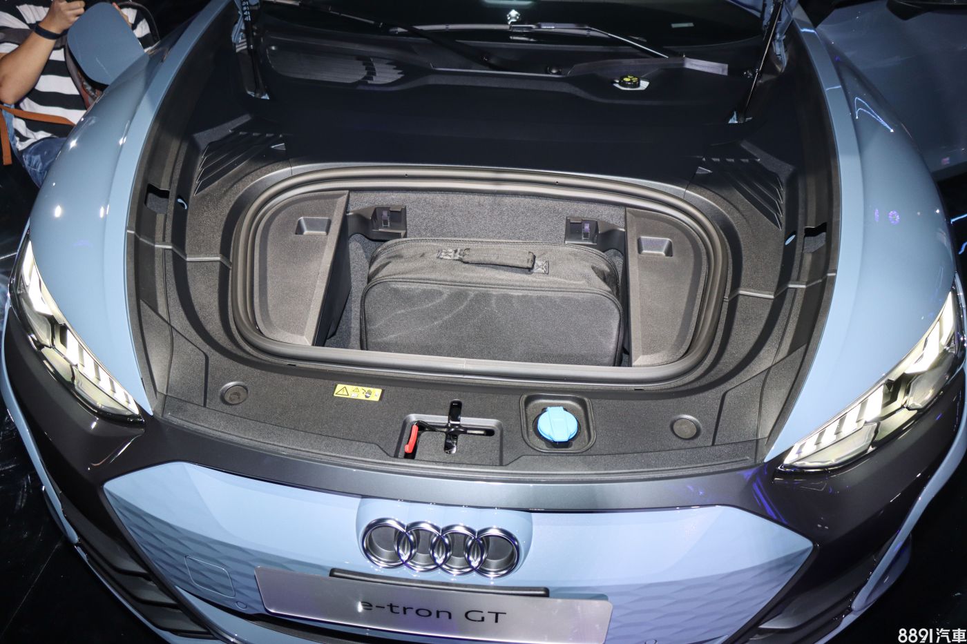 e-tron GT的前行李廂開關採按鍵式設計於駕駛側門邊,具備85L容量,可用來放置充電纜線等隨車物品。