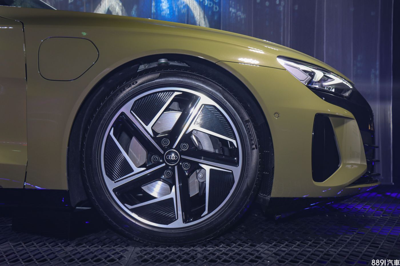 配胎規格依車型而異,e-tron GT標準款採20吋鋁圈,搭配前245/45R20、後285/40R20的倍耐力Cinturato P7,是主打靜肅性和舒適表現的胎款。