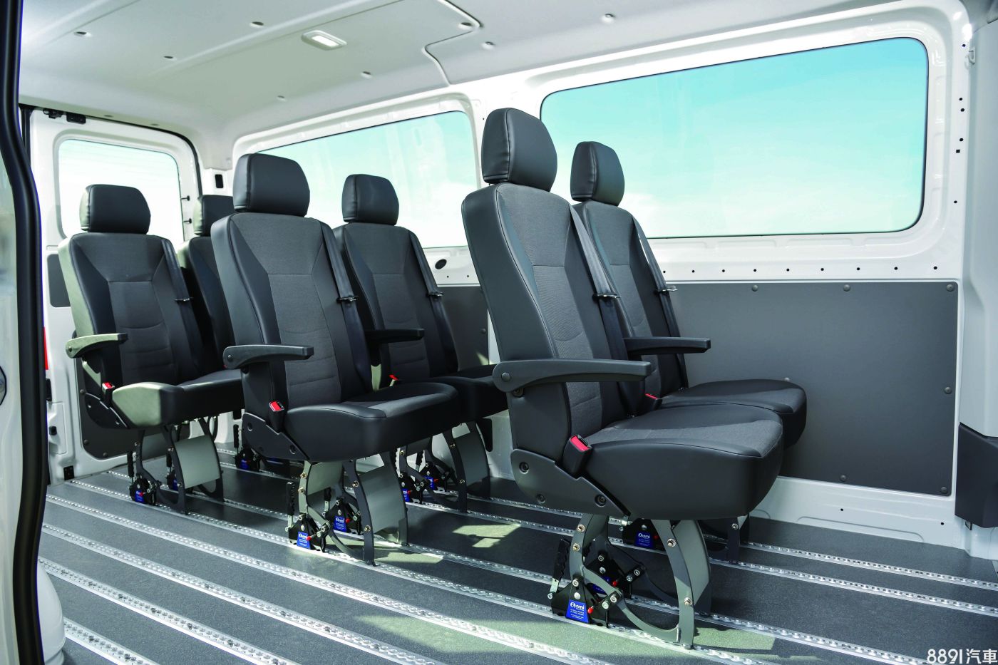 全車系標配鋁合金無段式滑軌地板,以及採用快拆設計的6組單人獨立座椅,可依照不同需求自行調整座椅位置,並創造更方便靈活運用的乘載空間,其他標配項目包含後艙獨立空調及出風口、頭燈彎道輔助照明、Crosswind Assist側風穩定輔助、EDL電子防滑差速器、斜坡起步輔助、駕駛疲勞警示、MCB二次碰撞預煞系統等。