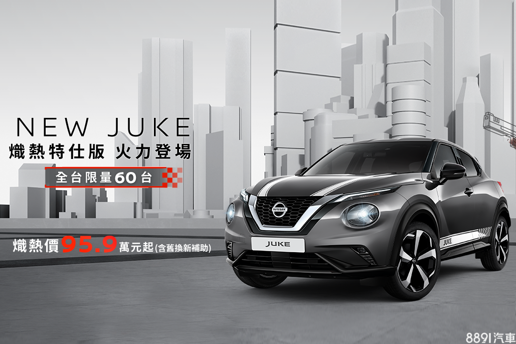 Nissan進口小跨界Juke宣布在台推出「熾熱特仕版」,開價100.9萬,雖說價格比頂規「駕趣享樂版」增加2萬,不過特仕款外觀新增賽車格紋車貼,內裝則採橘/黑雙色搭配凸顯風格,交車再贈送電子後視鏡,全台僅有60輛配額。