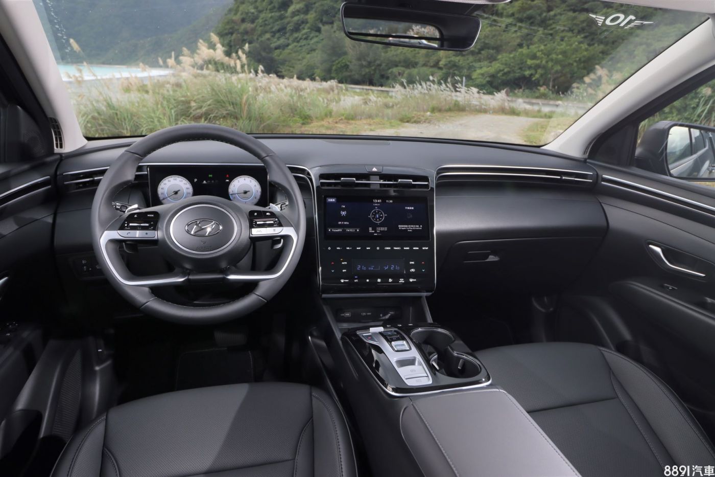 新Tucson車室改變頗大,格局簡化而更加清爽,並運用水平線條強化視野寬闊度,數位化座艙、觸控空調面板、按鍵式排檔座等設計,營造出不俗的科技氛圍;全系標配10.25吋數位儀錶+10.25吋多媒體觸控螢幕的組合,可支援Apple CarPlay、Android Auto連結。