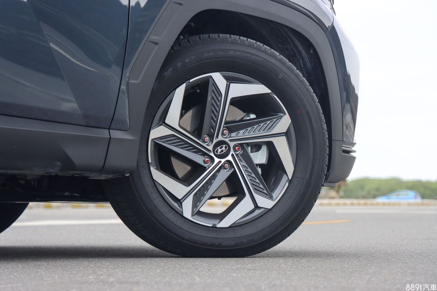 腳踩18吋鋁圈,造型同採幾何線條,搭配雙色塗裝,配胎為235/60R18瑪吉斯Bravo HP-M3,是專為SUV所設計的舒適胎款。