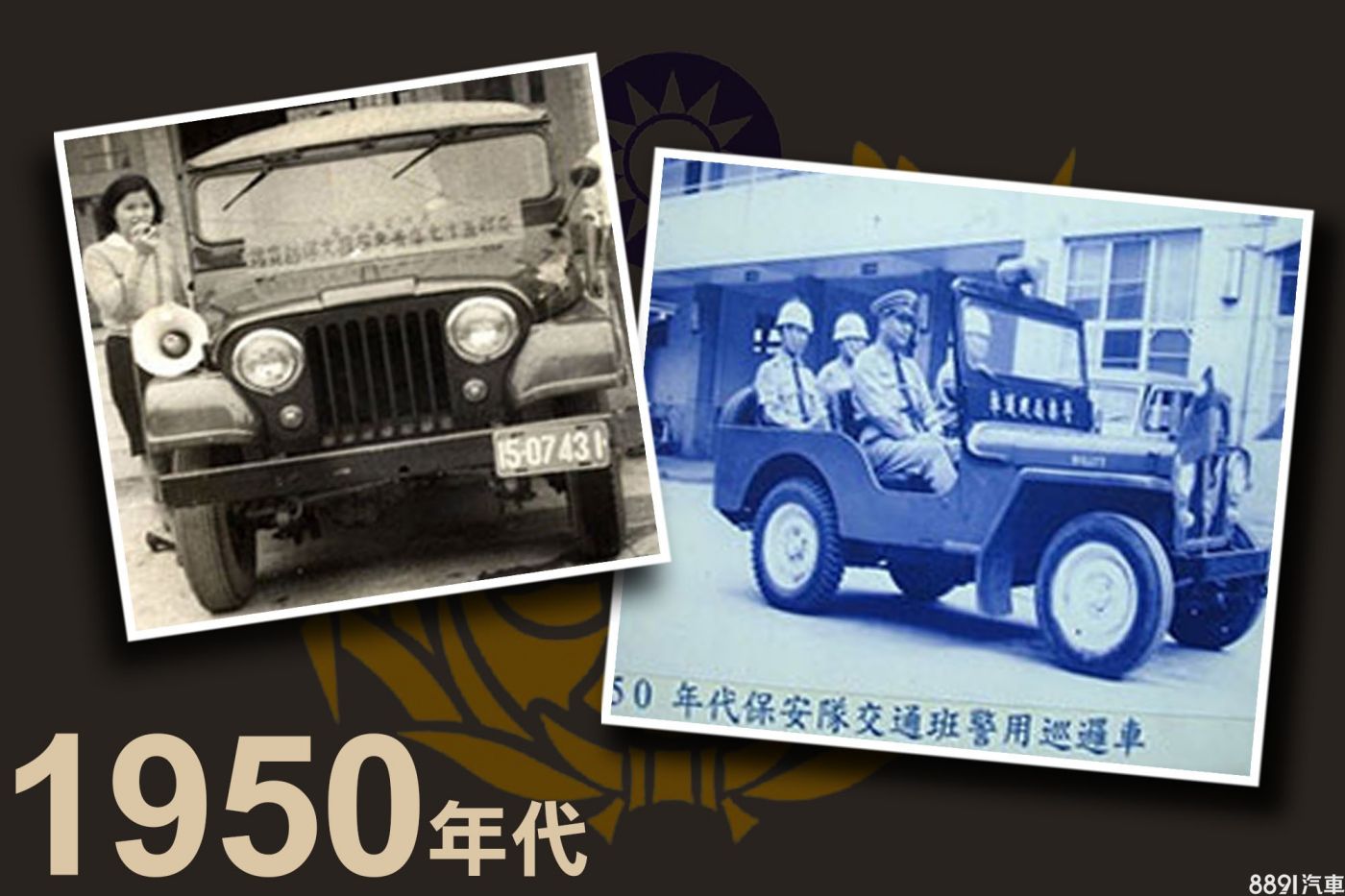 台灣在最初的1950年代,因為二戰剛結束沒多久,大多數路面尚未鋪裝完全,因此警用巡邏車大多是延用具有越野能力的Willys軍用吉普車,或是上圖中民用版本的Jeep CJ來擔任值勤工作。當時的警車不像現在有顯眼的警示燈,反而會裝上高功率放送喇叭,為的就是巡邏之餘也能順便進行政治宣傳。(圖片出處:內政部警政署)
