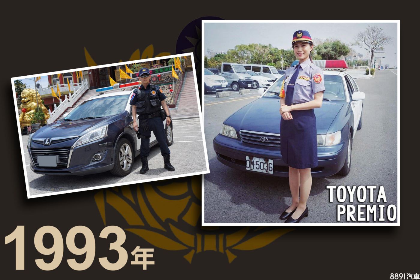 1993年開始,警用巡邏車歷經第二次車色「小改款」,由原本的黑白配小幅更動為藍白配色,主要是因為藍白配色跟員警身上的深藍色制服較有一致性,最後也就這樣一直沿用至今。上圖車款年份並非確切1993年式,主要用意為呈現警察制服跟藍白車色十分匹配。(圖片出處:高雄市政府警察局)