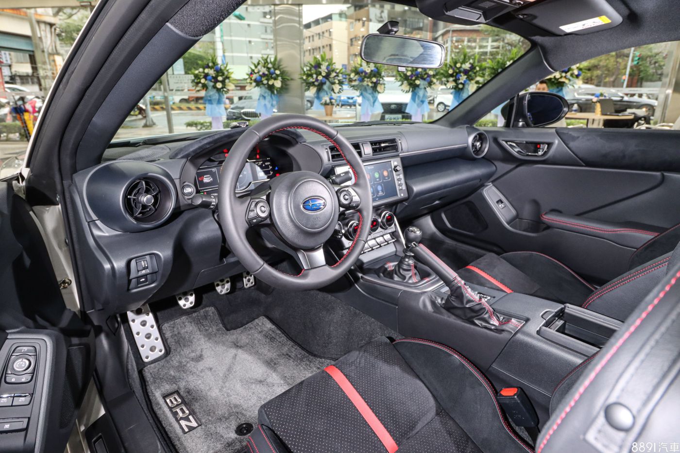 大改款座艙減少了弧形元素的運用,儀錶台改採水平鋪陳,在視覺上有放大車室的效果,而黑底搭配紅縫線的內裝,運用在強調運動風格的BRZ上毫不違和。