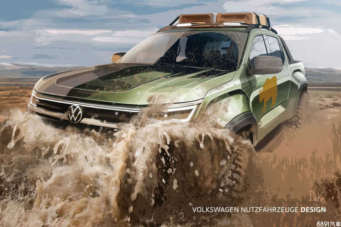 車頭樣貌,這次沒有再多點線索,但從先前預覽圖已知,新Amarok包含水箱護罩、前保桿等造型,都具有品牌新世代車款特徵,並以深刻的鈑線、碩大的輪拱、粗壯飾條等營造粗獷感。
