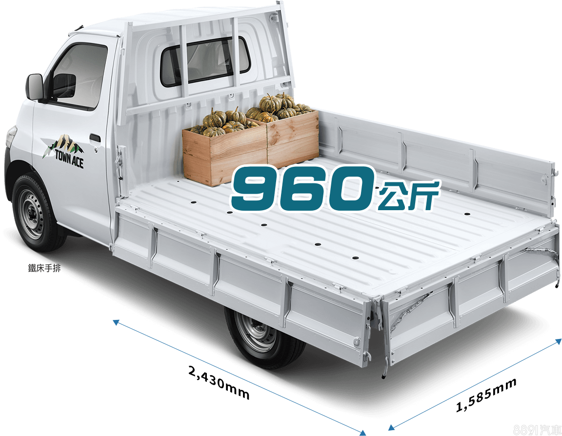 貨台除入門款為鐵床外,其餘車型皆為木床,尺寸上稍有不同,鐵床貨台長2430mm、寬1585mm,木床則在長度上小幅增加15mm;載重能力上也略有差異,鐵床版可負載960kg,木床手排及自排各可乘載930kg與920kg。