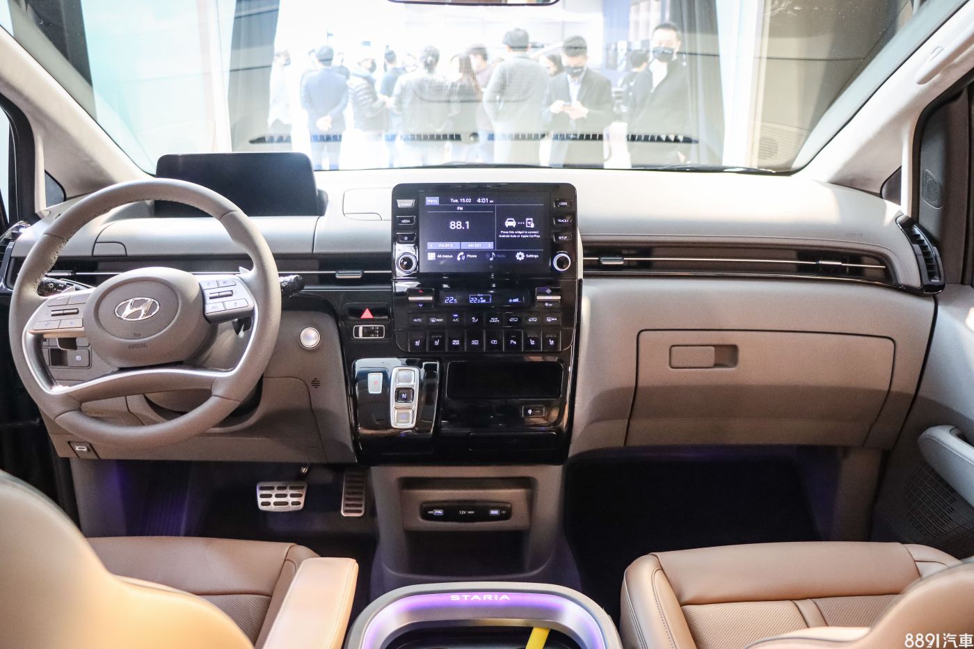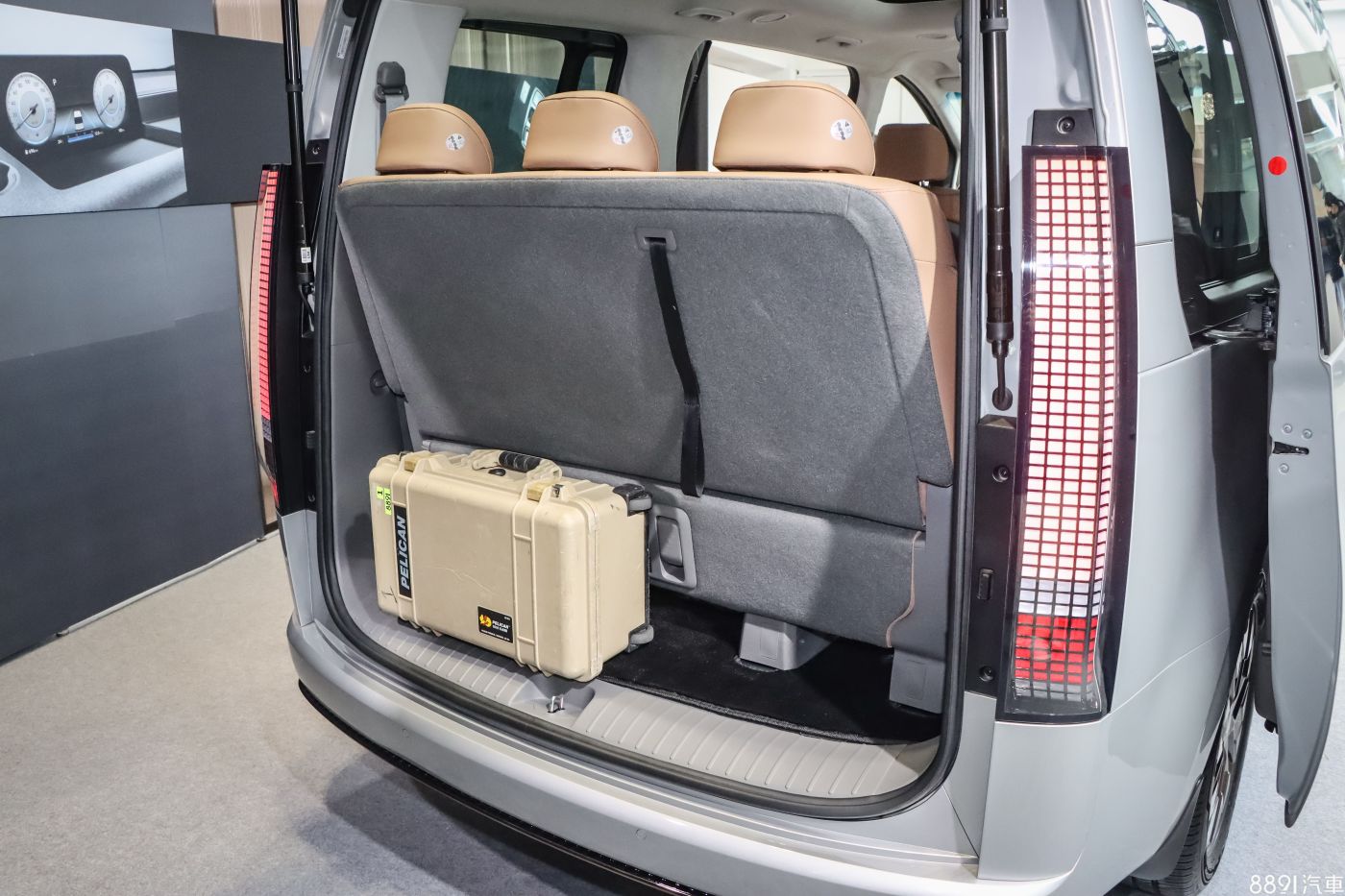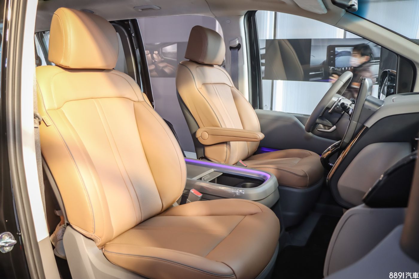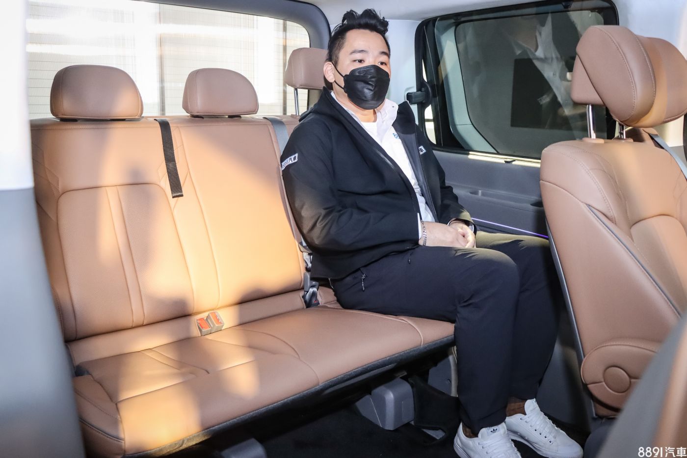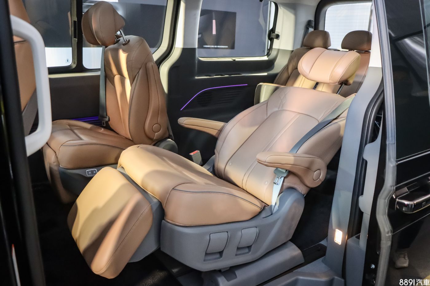 軸距達3273mm的Staria,國內導入7座、8座及9座等多種版本,展示車為7座(2/2/3)配置,二排為獨立雙座,且具備電調含腰腿靠、加熱、通風、副駕座後方快速調整等功能。