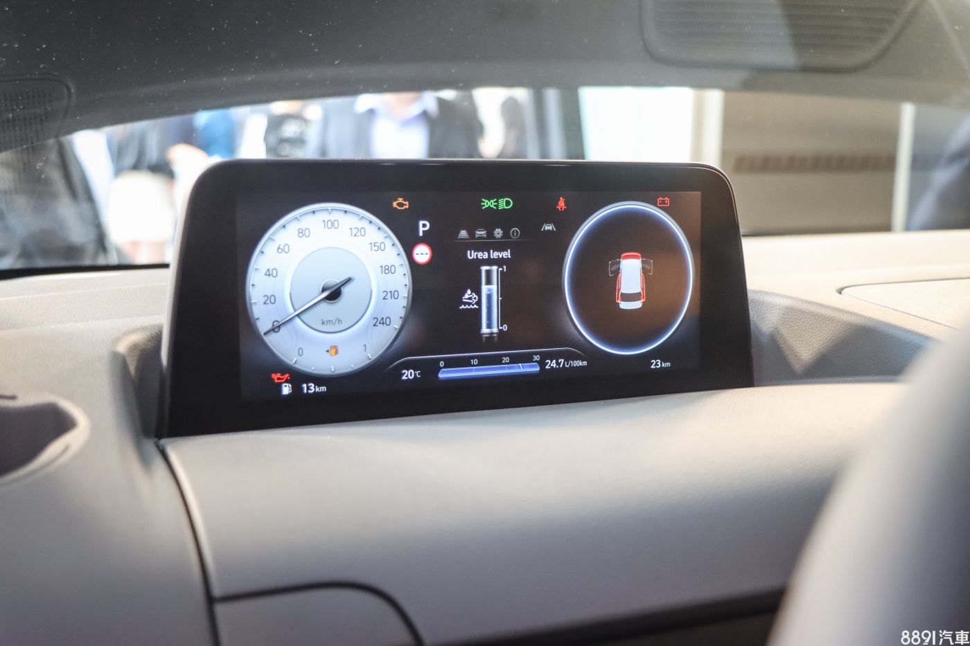 展示車配置10.25吋數位儀錶,是熟悉、已於大改款Tucson等現代新車上可見之介面,此為GLD-B車型以上標配。