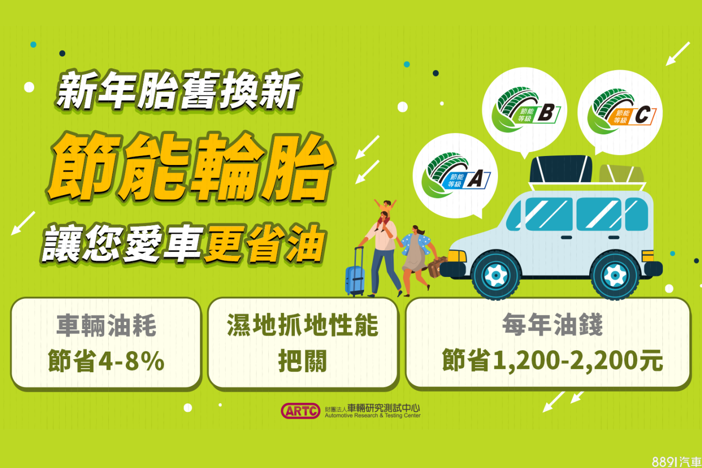舉例來說,購買節能款式輪胎若一年行駛1.5萬公里,約可節省65L燃油,就省下近2000元油錢支出,輪胎的定期檢查更換,是每位車主的必要常識,使用節能輪胎並搭配良好的駕駛習慣,還可以有效降低油耗節省支出。可透過張貼於輪胎上的節能標誌QR Code,或上網查詢適用自已愛車的節能輪胎廠牌規格。