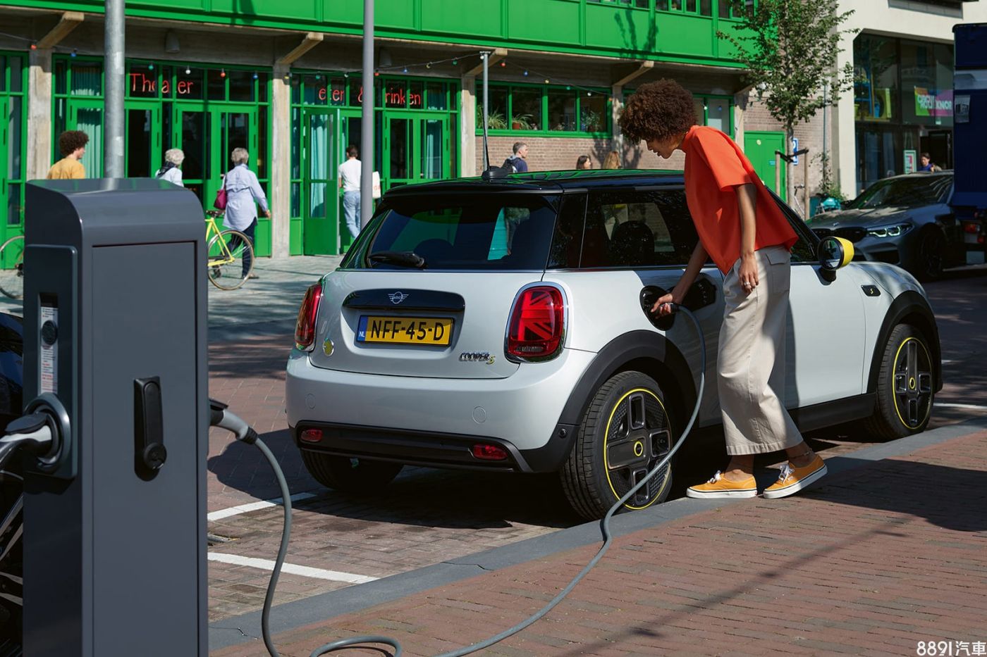 純電Mini外觀與二度小改的燃油版本相近,不過少了排氣尾管,油箱蓋也換成具Mini E純電徽飾浮雕的充電口蓋,此外黃色塗裝的後視鏡蓋及環車多處的亮黃色「S」標章,也成為Mini Cooper SE的正字標記。