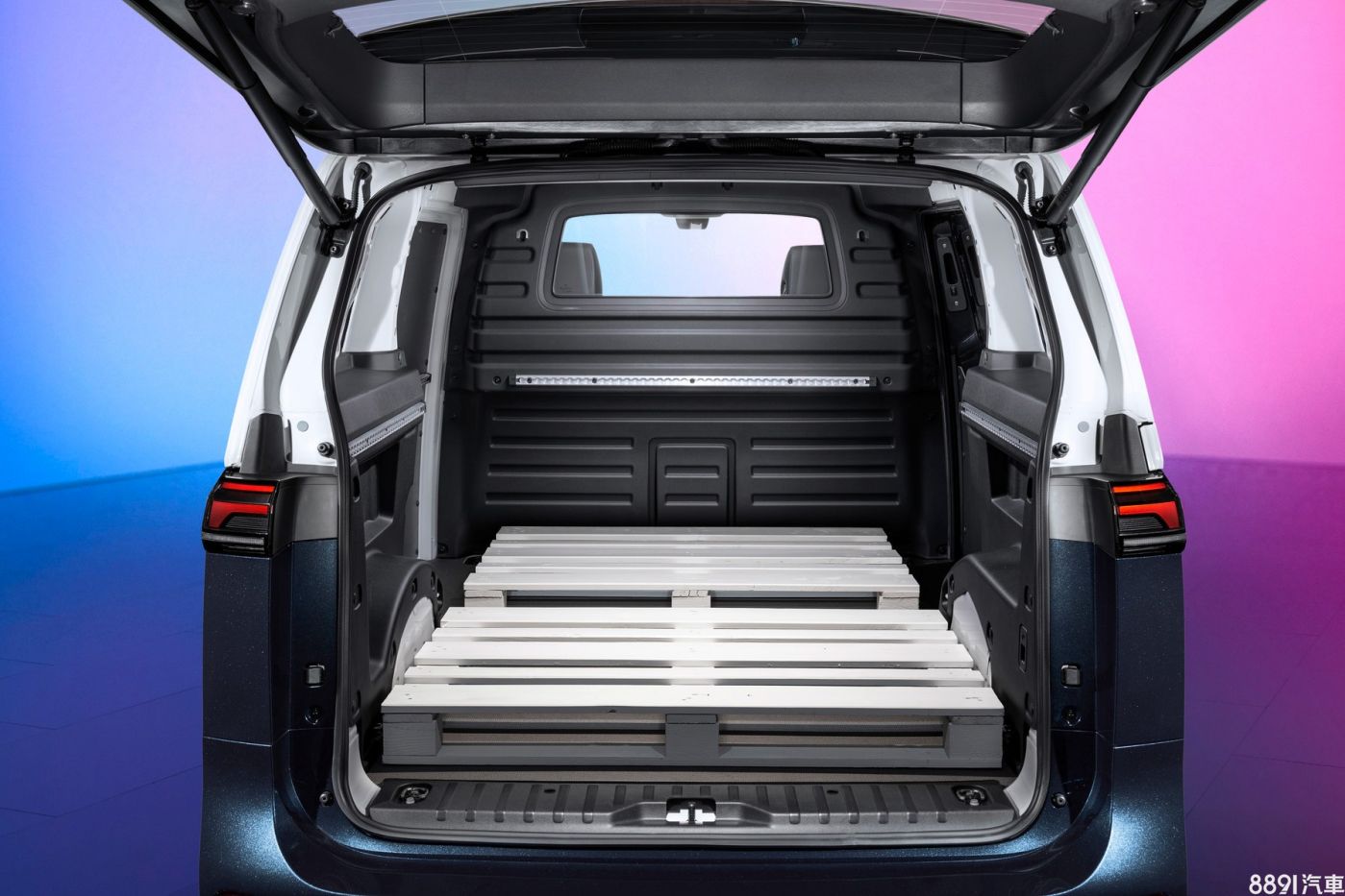 至於ID. Buzz Cargo貨車版本,前排可依需求選擇2或3人座,後方則區隔成3.9立方公尺的貨物空間,原廠表示可以放得下兩組歐洲規格的棧板。