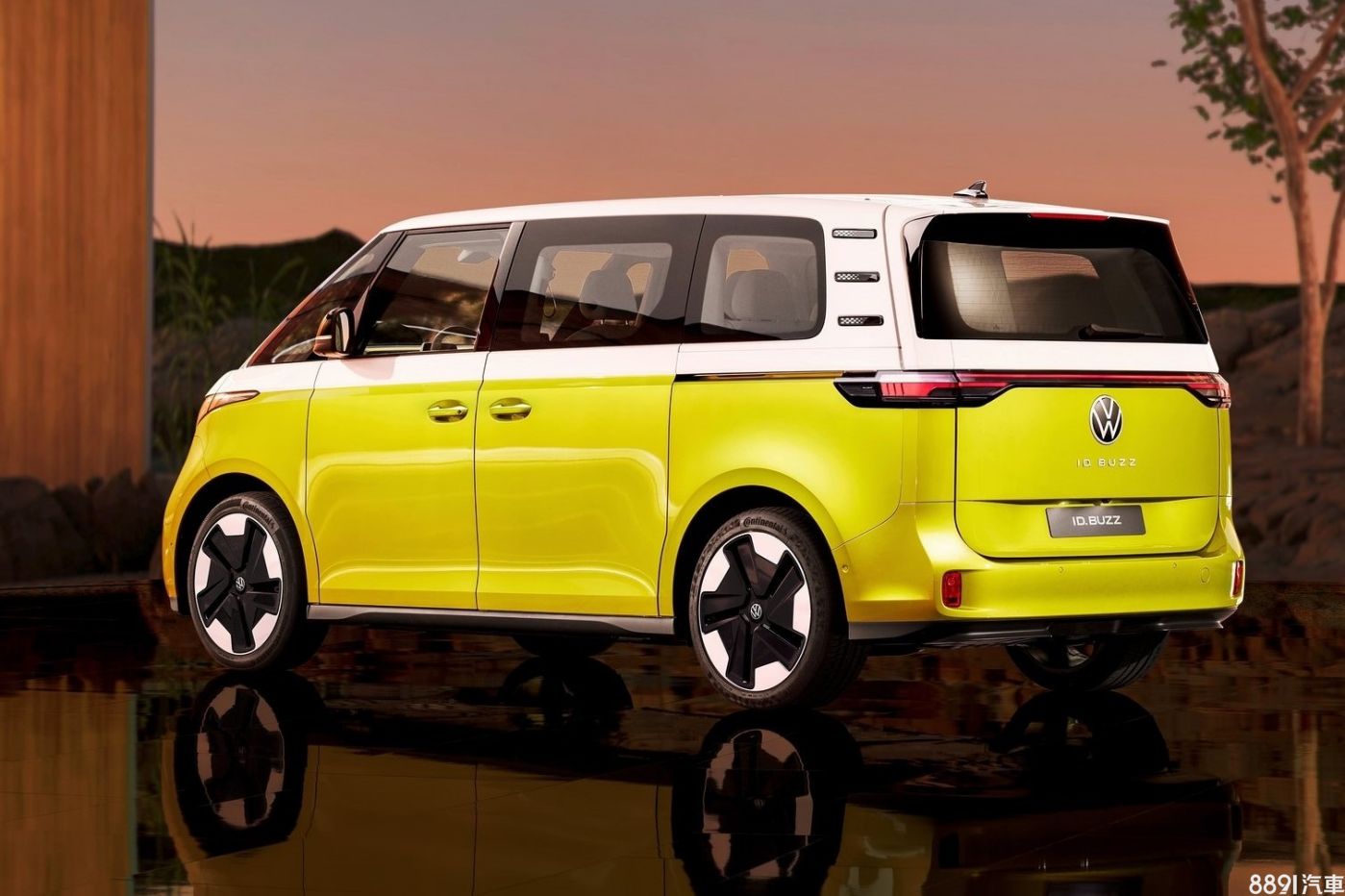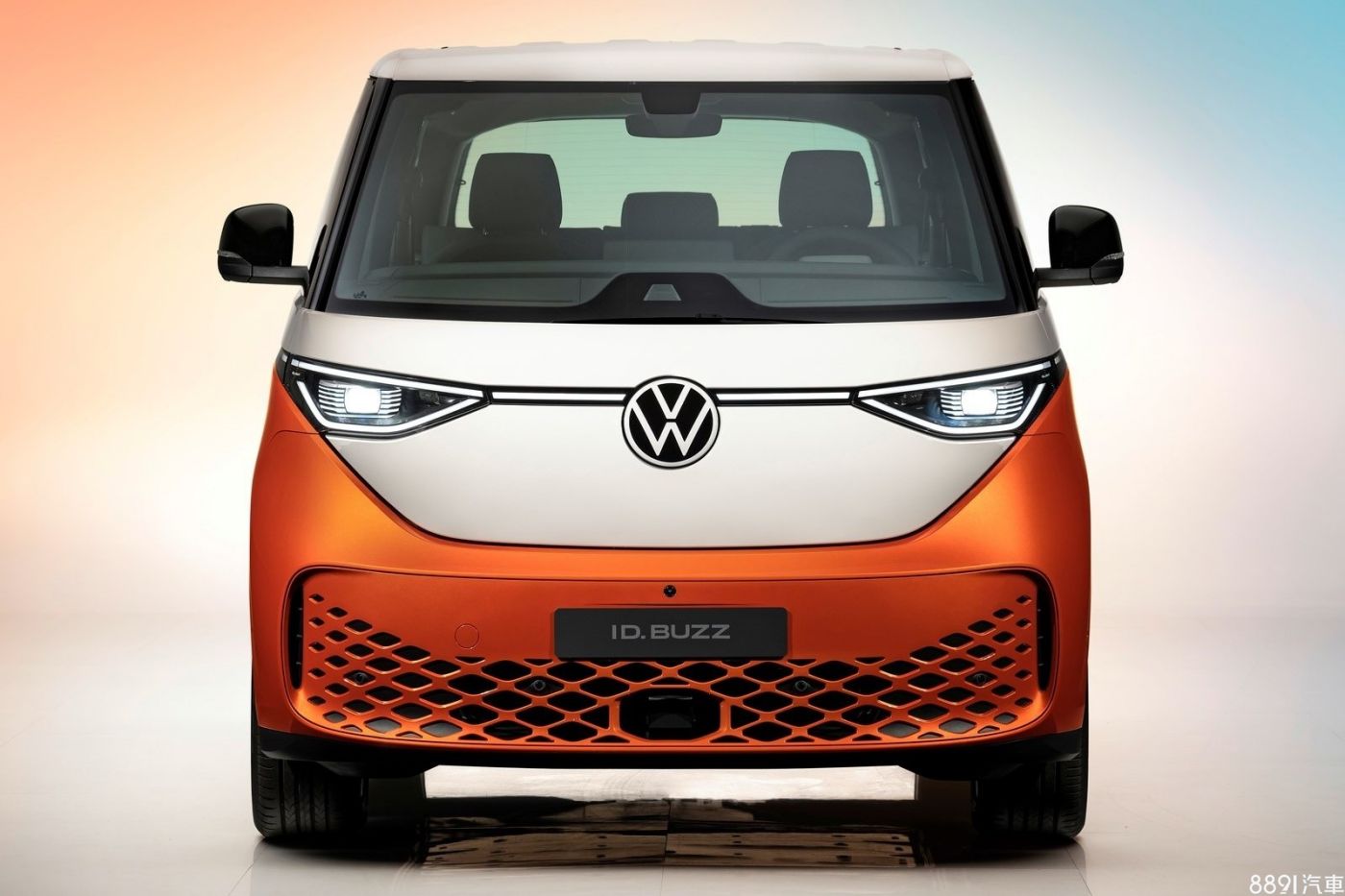 採用福斯集團MEB平台打造的ID. Buzz,定位是一款純電MPV車型,原廠公佈車長達4712mm、車款1985mm,軸距2988mm與現款標準版T6.1大致相仿,官方稱風阻係數僅0.285。外觀方面延續初代T1的元素,提供可選配的雙色車身,搭配前保桿長方形內凹設計,以及大小不一、堆疊排列的菱形網格,視覺上相當活潑。