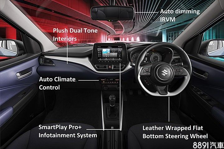 車室則估計也會與大改款Baleno相同(如圖),簡化格局並搭載新式樣方向盤、懸浮式多媒體系統、HUD抬頭顯示器等。