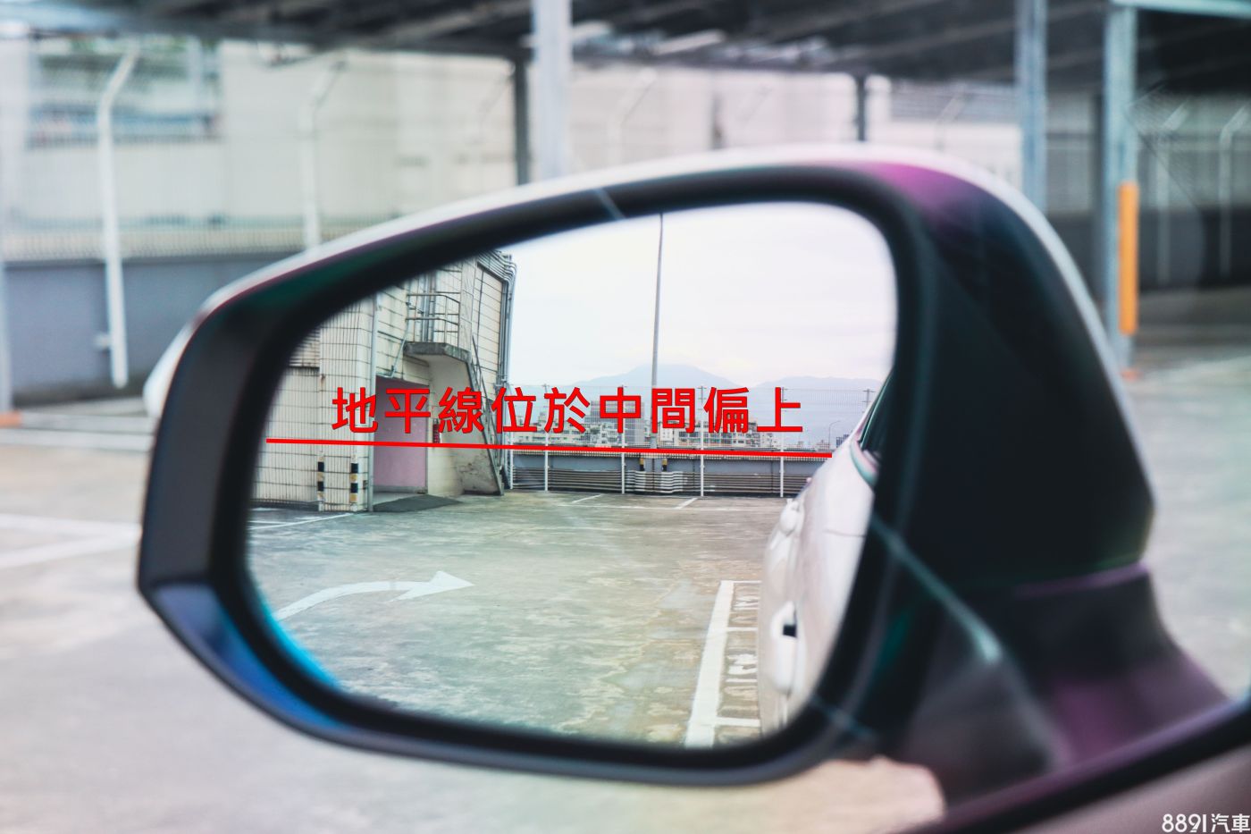 首先調整車外後視鏡片高低,從駕駛視線看去並參考車後遠方地平線,將地平線高低剛剛好落在鏡片中間偏上的位置,如此便不會看見太多天空,又能由遠至近涵蓋後方車側視野。畢竟汽車是在地面行駛,看見過多天空並沒有任何意義。