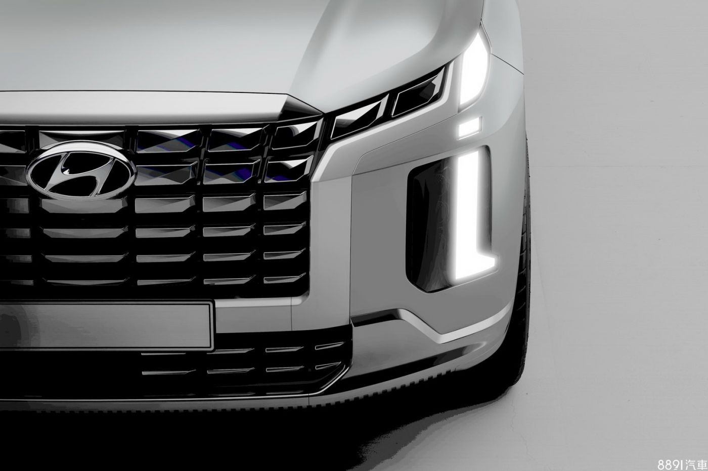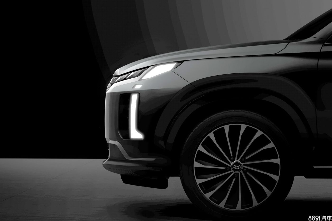 自目前Hyundai釋出的預告圖明顯可見,原廠為小改款Palisade進行了「Tuscon式整容」工程,頭燈組雖仍為分離式,但日行燈連結加入幾何圖形與珠寶元素的水箱護罩,使其「只有更前衛、沒有最前衛」!此外,並搭載新款多幅式鋁圈。