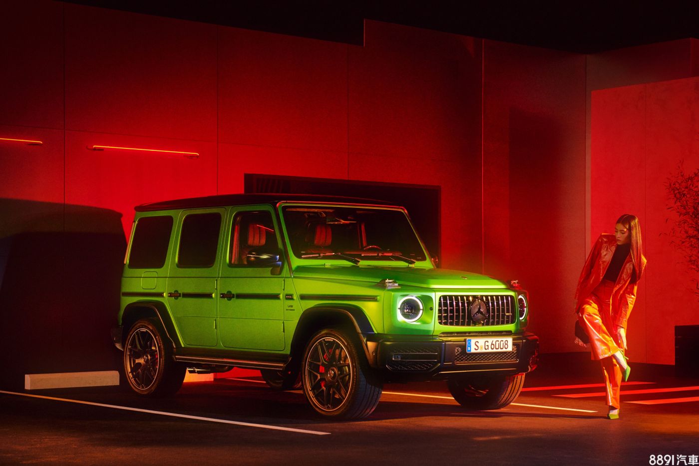 G 500 AMG Line Hero採用消光瓷釉白車漆,搭配AMG Line與夜色套件,腳踩20吋AMG五輻雙肋式霧黑鋁圈。