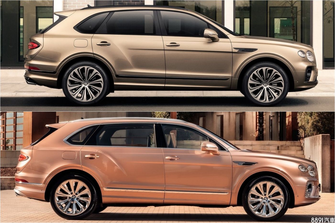外觀上雖然並沒有明顯變化,但與普通Bentayga相比(圖上),EWB長軸版本(圖下)的後門明顯加長,原廠表示EWB長軸版本的軸距增加了180mm,且都集中在B柱之後的後座,使得軸距來到3175mm,散發相當低調的大器尊榮感。