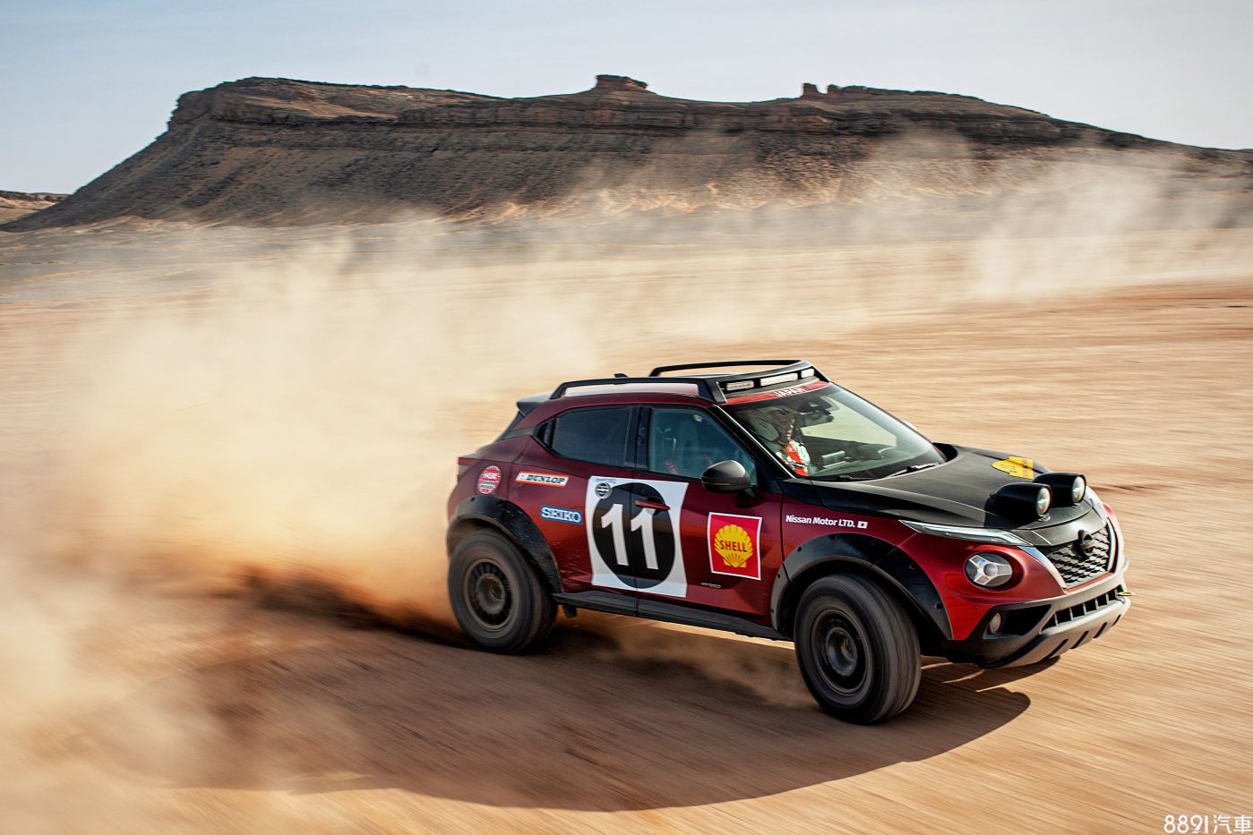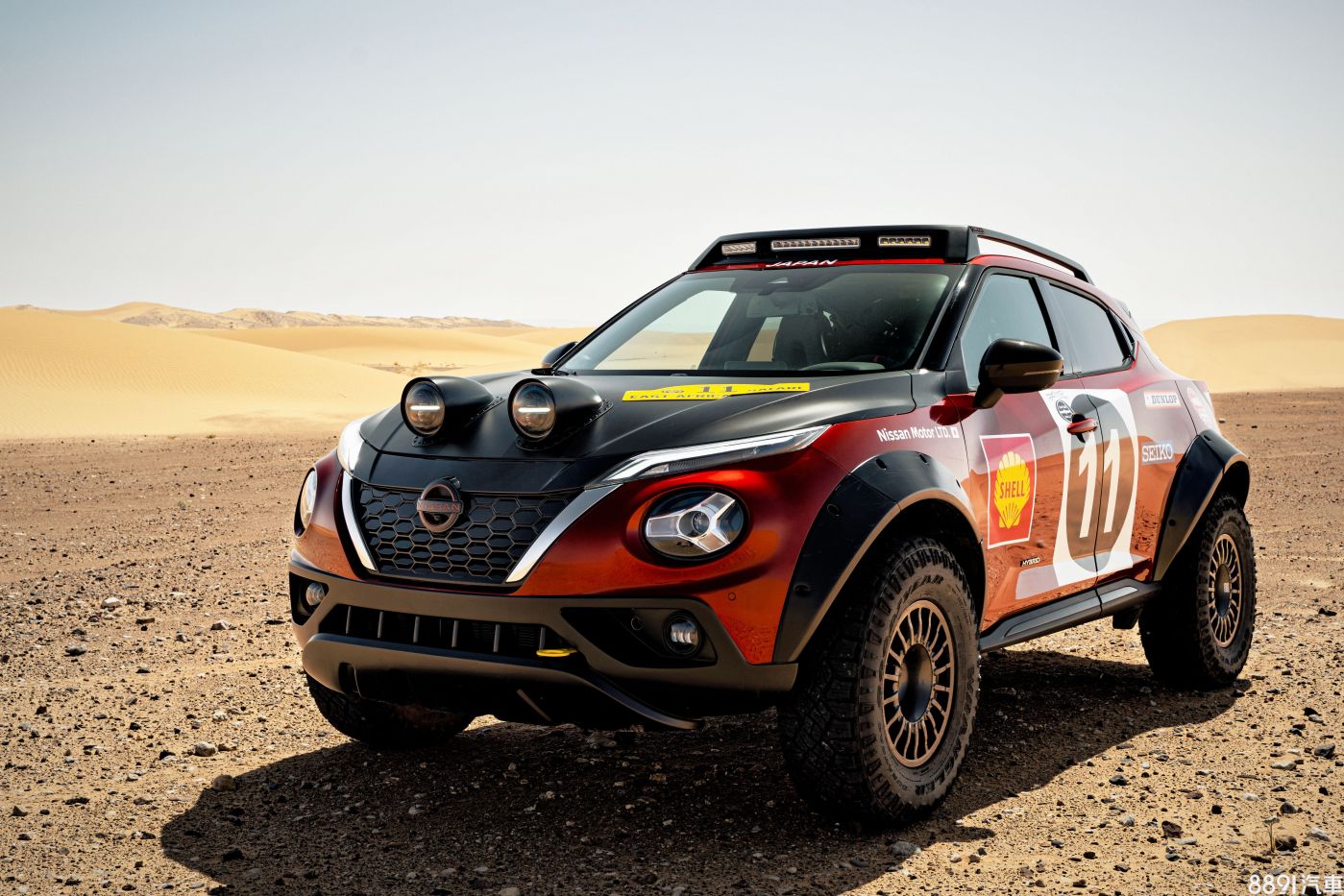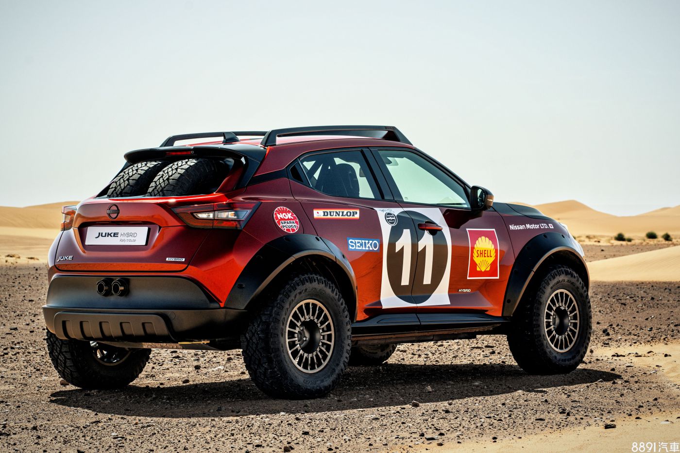 因應越野所需,前後保桿皆重新修改,加上了下護板,並藉更短的前後懸來增加離去角和進入角,尾款更改成中置雙出設計。而車尾最大亮點,莫不過於突出尾門的兩顆大備胎,讓Juke還得修改後艙格局並移除後檔玻璃才能放得下。