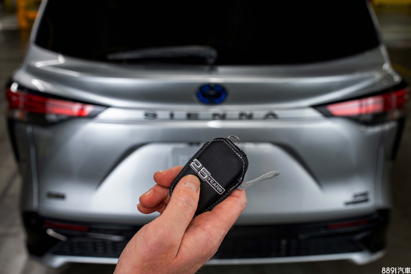 限量2525台的美規Sienna 25th Anniversary Edition,是以運動化XSE車型為基礎,外觀特殊的妝點不多,主要透過專屬車色、黑色車外後視鏡蓋和鯊魚鰭天線、專屬20吋鋁圈,以及25周年徽飾,顯其特殊身分。