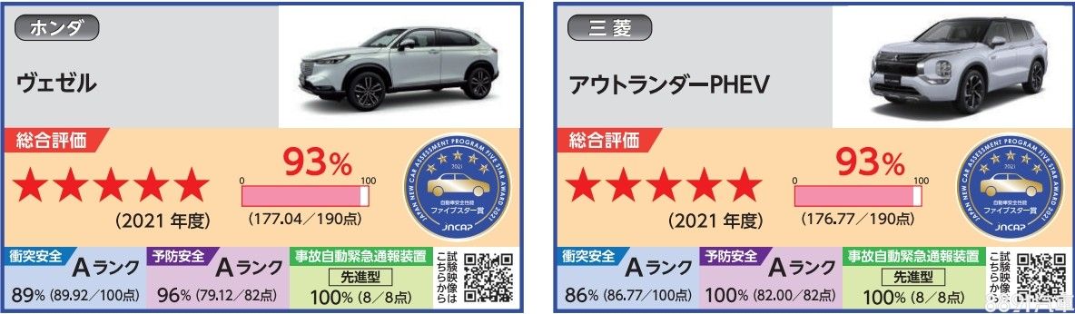 其餘五星評價且與台灣市場相關的車款還包含了HR-V、Outlander PHEV、Prius C、Kicks與CX-30,不過HR-V與Kicks在台灣為國產身分,並不能直接引用測試結果,僅能作為買車時的額外參考。