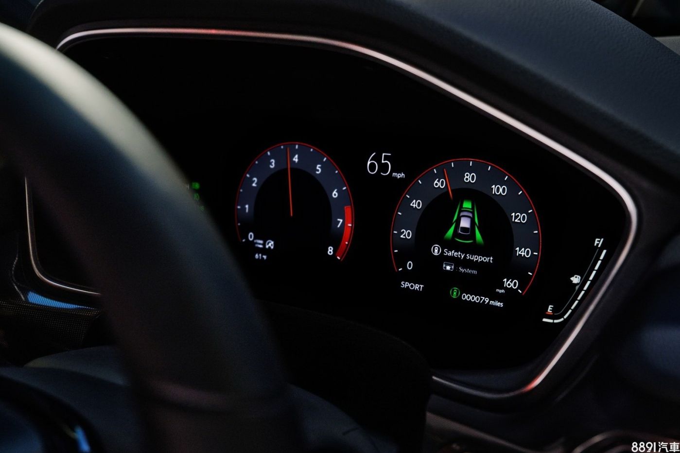 新車配置10.2吋數位儀錶,高階車型加入更多紅色色調設計,兩側均支援自訂義顯示,左側主要顯示音樂、電話等相關資訊,右側則提供車輛訊息、駕駛輔助功能等。