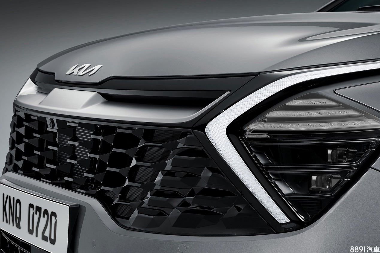 Kia新世代車款外型都「很有戲」,大改款Sportage也不例外,第一眼馬上被這從引擎蓋下緣延伸至水箱護罩內、造型有如迴力鏢般的LED日行燈條抓住目光,搭配分離式LED頭燈,具備光感應啟閉、遠光燈自動切換等基礎功能,X-Line版本另在氣壩兩側追加LED前霧燈。