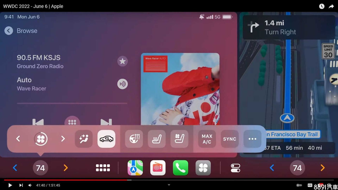 在最新的蘋果開發者大會上(WWDC 2022),發表了新一代Apple CarPlay概念,圖上可清楚看到,舉凡中央螢幕、儀錶甚至是延伸至副駕的車機介面,通通都由CarPlay系統所取代,未來使用者想設定車輛,不需要有切換系統步驟,方便性更好。