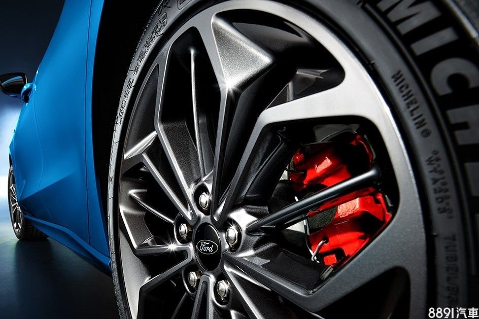 鋁圈部分入門版配置16吋,自ST-Line版本以上改搭18吋規格,搭配235/40R18米其林PS4跑胎,甫以紅色煞車卡鉗以及底盤高度降低10mm的運動化懸吊。