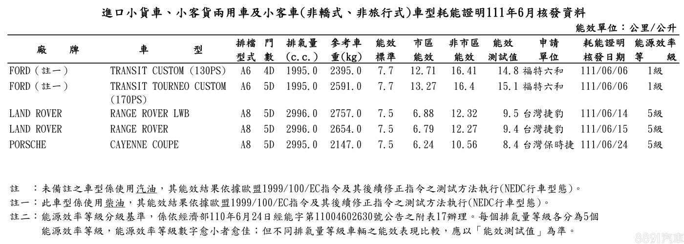 同月送測的還有新一代Land Rover Range Rover,並帶來標準款及長軸版兩種車型,皆搭載3.0升渦輪直六,並配備有48V輕油電系統,分別繳出9.4km/L、9.5km/L的平均能耗值,能源效率等級為5級。