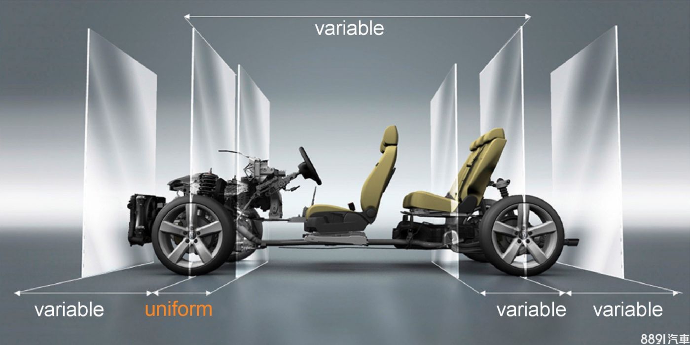 為滿足市場多變需求,MQB模組化平台依應用車型,可調整前、後懸、軸距,來符合不同級距車款比例,首款應用車型為Golf 7,自此不論是小一號的Polo ,亦或是中型休旅Tiguan,皆由此平台而生。
