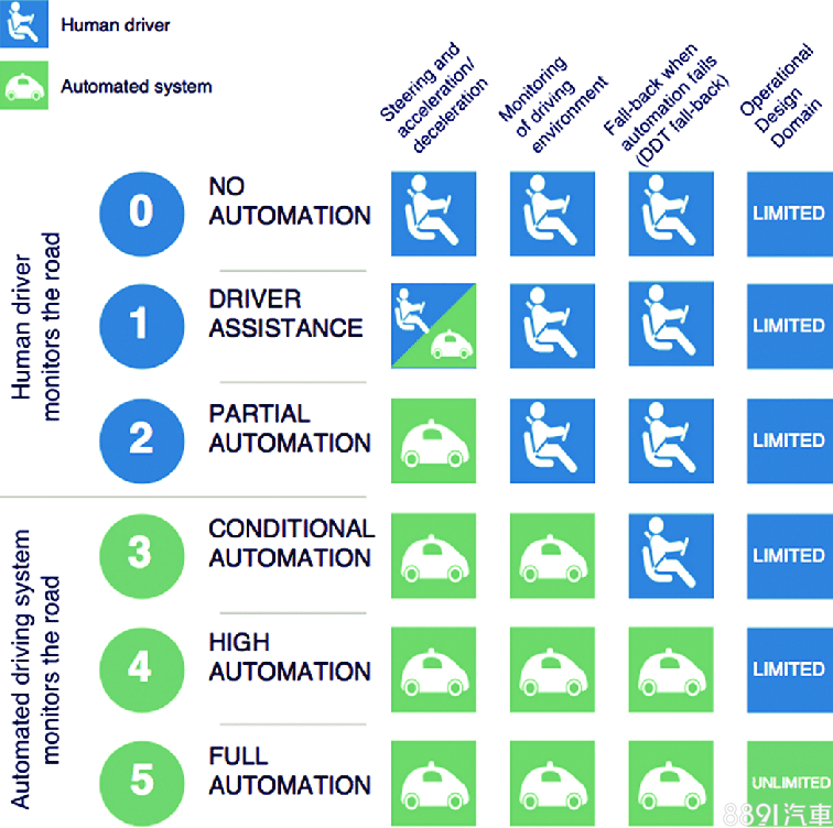 至於Level 3以上就被視為具備「自動駕駛」功能,即便是等級最低的Level 3在多數的行駛環境中,車輛都是由自動駕駛系統進行所有操控,僅在系統提出操作判斷要求時,例如變換車道等,駕駛人才須適當地回應,從上圖也可以清楚看到,Level 2與Level 3的差別,就在於前者環境監控是由駕駛人主導,而後者則交由系統負責,別再搞混了。