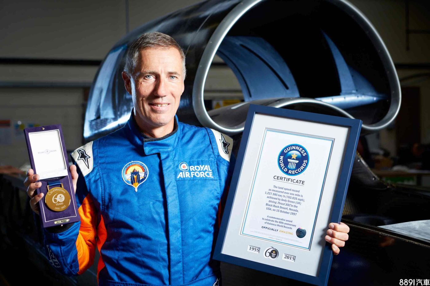 搭載兩具從退役戰鬥機拆下的勞斯萊斯Spey渦輪噴射引擎,讓Thrust SSC最大馬力來到11萬hp之譜,0~1000km/h加速僅需16秒!不過每秒就得消耗近18公升燃油,換算下來油耗表現只有區區0.02km/L!(圖/金氏世界紀錄官網)