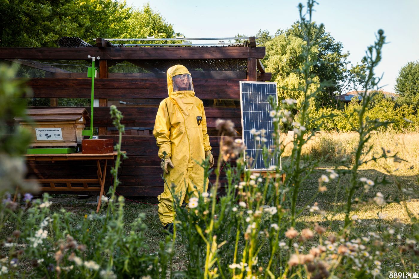 專責養蜂設施的人員理所當然要穿上防護衣,上頭有明顯的藍寶堅尼Logo,不過這配色對䱷熟悉美劇的車迷來說,可能會想到Breaking Bad的工作服...