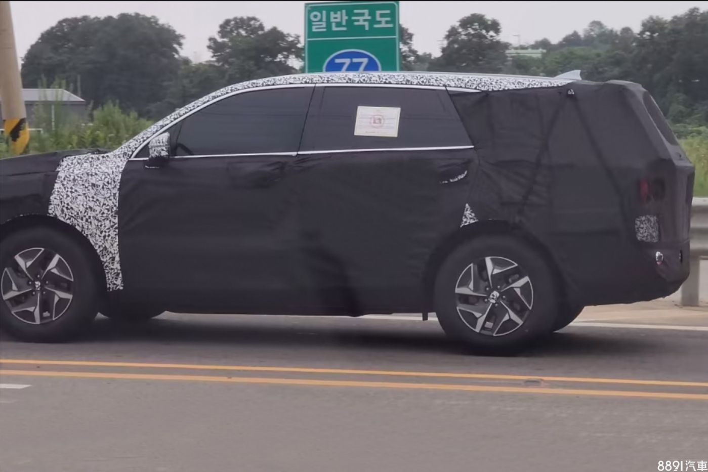 現行第四代Sorento是2020年所發表,Kia已經正在進行中期更新的規劃,這次首度曝光的測試車身披嚴密偽裝,不過從大燈所露出的「部位」看來,似乎與現款的水平設計有些不同,不排除會針對燈組、保桿等進行修改,甚至可能會比照即將問世的純電休旅EV9換上垂直的大燈設計。
