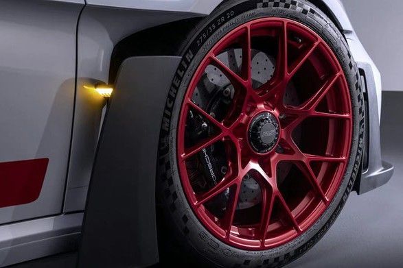 流出的車型搭配紅色中央鎖孔式鋁圈,前、後輪分別配置20吋及21吋款,示範款並配備米其林Pilot Sport Cup 2性能胎款。部分外媒並推測,輪圈可能採鋁鎂合金材質,以求輕量化效果,但尚未獲得官方證實。