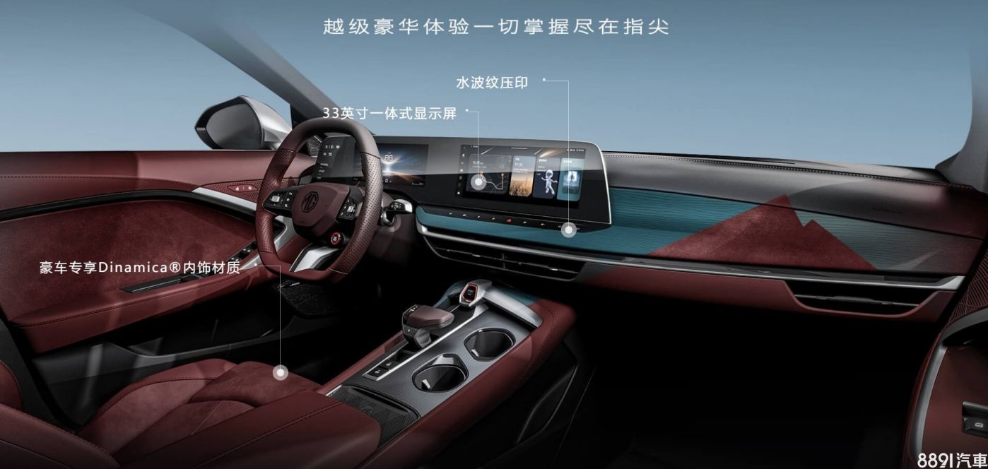 座艙設計相當簡潔,幾乎沒有太多實體按鍵,駕駛資訊及多媒體系統由一具33吋一體式大螢幕負責,配備Nappa真皮賽車化座椅及平底方向盤,相當匹配其跑格設定。