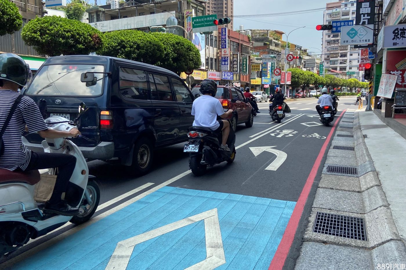 然而這類待轉格最大的問題,可能是騎士進入待轉格後還需要「喬姿勢」,將車頭對準欲轉彎的方向,不過此時風險也伴隨而來,當駕駛專注於將機車前後移動時,難免會分心於路況,萬一不慎車頭多往前挪了些距離,就可能與呼嘯而過的汽、機車發生碰撞。