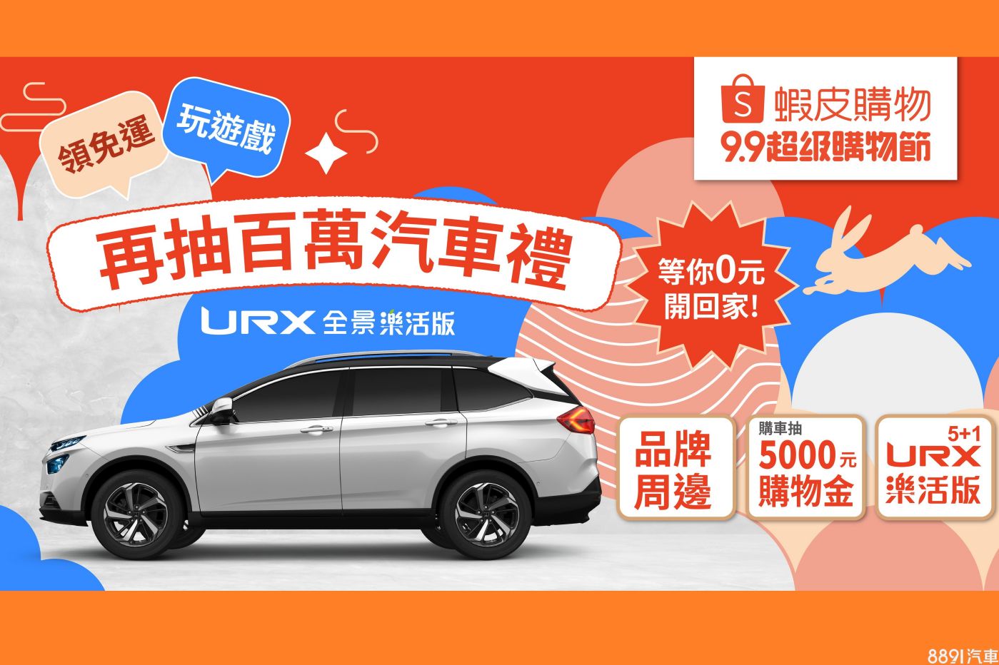 Luxgen與蝦皮購物合作,9/9前,只要在蝦皮購物領取免運券玩遊戲,就有機會抽中「百萬汽車禮包」,包含URX 5+1全景樂活版1台、原廠限量周邊禮包等。