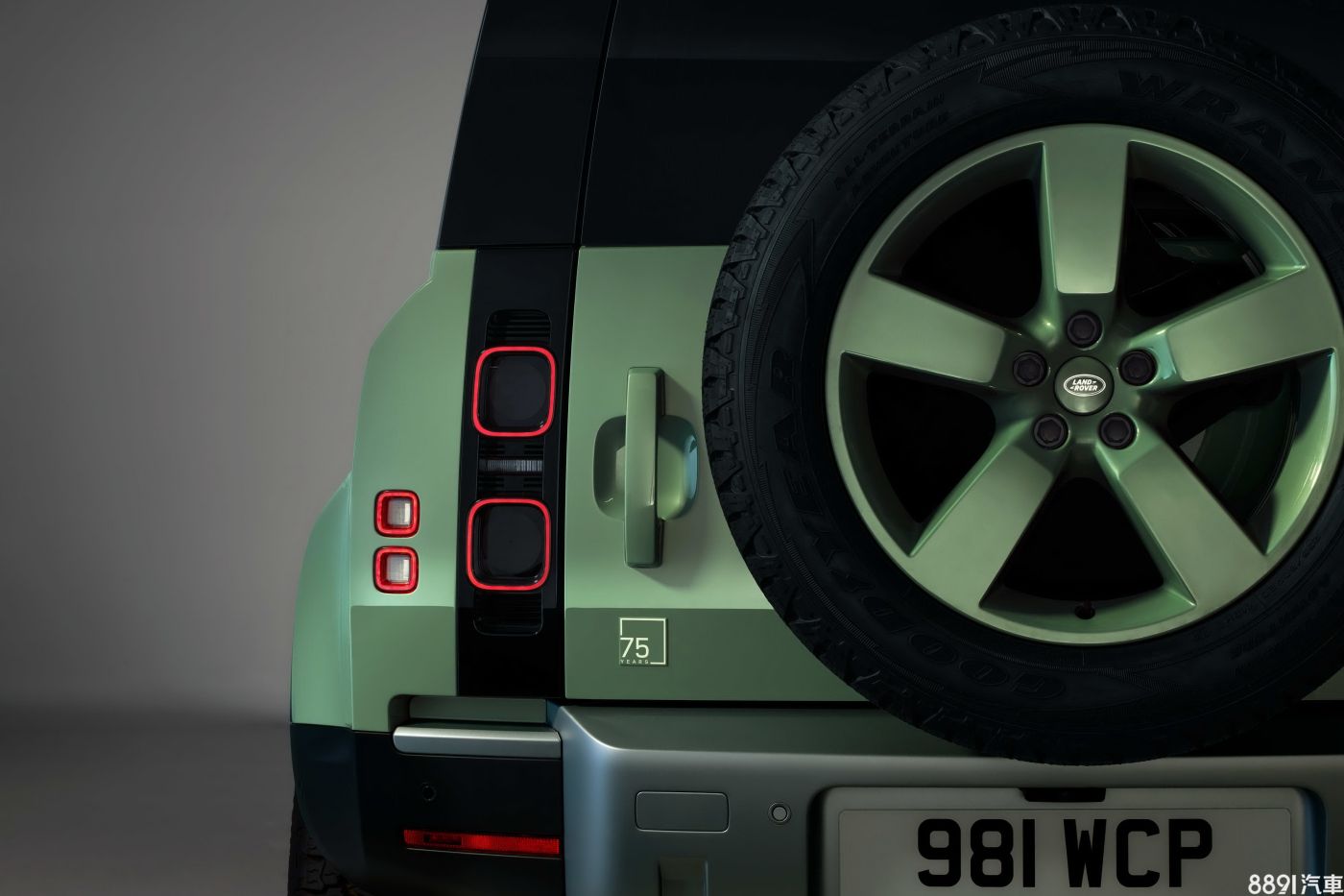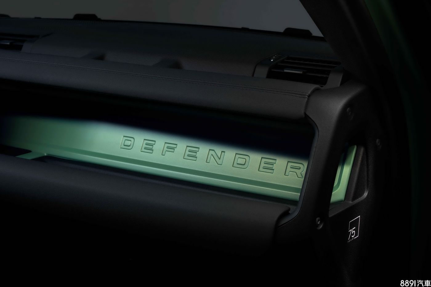 Defender 75th Limited Edition採用原廠首次使用於Defender車系的Grasmere Green塗裝,搭配以同色妝點得20吋輪圈與輪孔蓋皆、顯其身分的75週年徽飾,並於前保桿施以Ceres Silver色調點綴,使其外觀更顯獨特。