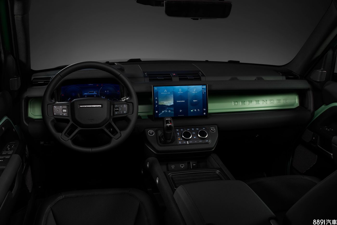 紀念版於車室中控飾板同樣施以Grasmere Green粉末塗層,並使用雷射雕刻手法,加上檀木黑色系,兼顧質感與「經典味」呈現。